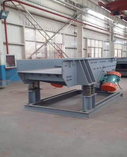 อุปกรณ์ใช้มอเตอร์สั่น 2 ตัวที่มีคุณสมบัติเดียวกันเป็นแหล่งระตุ้นแบบคู่การหมุนความเร็วสูงของบล็อก eccentric ที่ปลายทั้งสองของมอเตอร์สร้างแรงเร้าต่อเนื่อง, ส่งพลังสั่นคงให้กับอุปกรณ์ ช่องอาหารสั่นสะเทือนในการเคลื่อนไหวเชิงเส้นแบบสลับไปตามทิศทางที่ชันเพื่อให้สําเร็จการดําเนินงานขนส่งวัสดุเมื่อองค์ประกอบความเร่งของสั่นสะเทือนของช่องลดใหญ่กว่าองค์ประกอบของความเร่งของแรงโน้มถ่วงในทิศทางตั้งตรงกับช่องลดในกระบวนการนี้ วัสดุในกระบวนการนี้ถูกโยนขึ้นไปข้างบน โดยกระโดดไปข้างหน้าตามเส้นทางปาราโบลผ่านการเคลื่อนไหวกระโดดต่อเนื่องที่สynchronized กับความถี่การสั่นสะเทือนของท้อง, การให้อาหารของวัสดุที่เท่าเทียมกันและต่อเนื่อง